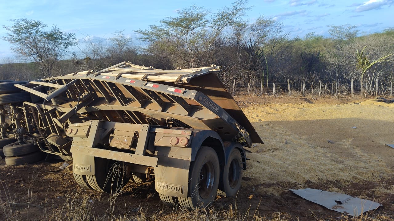 Rodotrem carregado de milho tomba na BR-412, próximo a Serra Branca