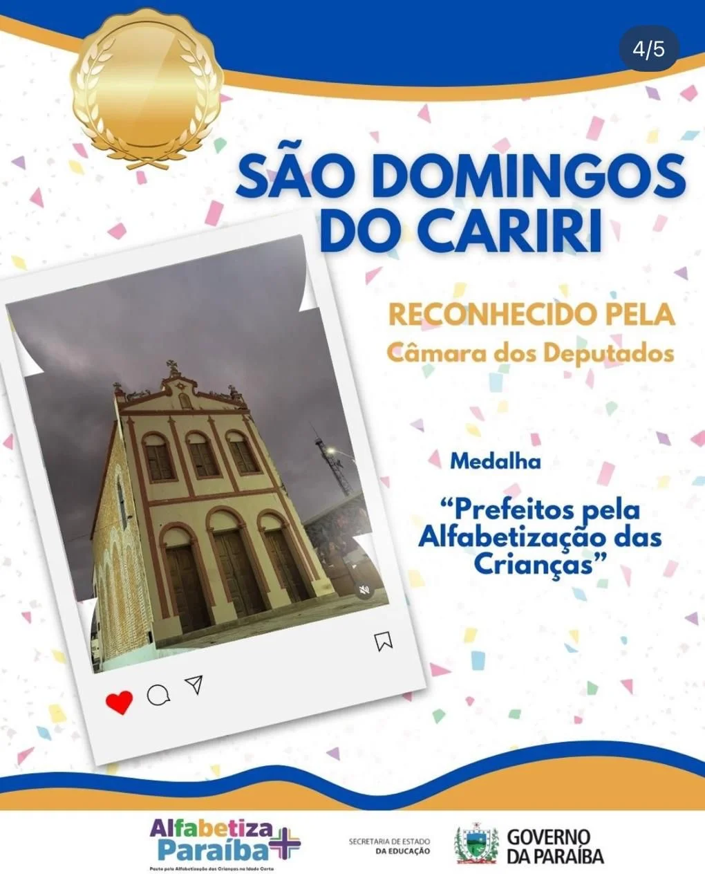 O município de São Domingos do Cariri, no Cariri paraibano, está entre os destaques nacionais de 2025 ao ser contemplado com a Medalha Prefeitos pela Alfabetização das Crianças, reconhecimento concedido pela Câmara dos Deputados a gestões municipais que apresentam avanços significativos na educação básica. Sob a gestão do prefeito Onildo Lindberg Ananias da Silva, o […]