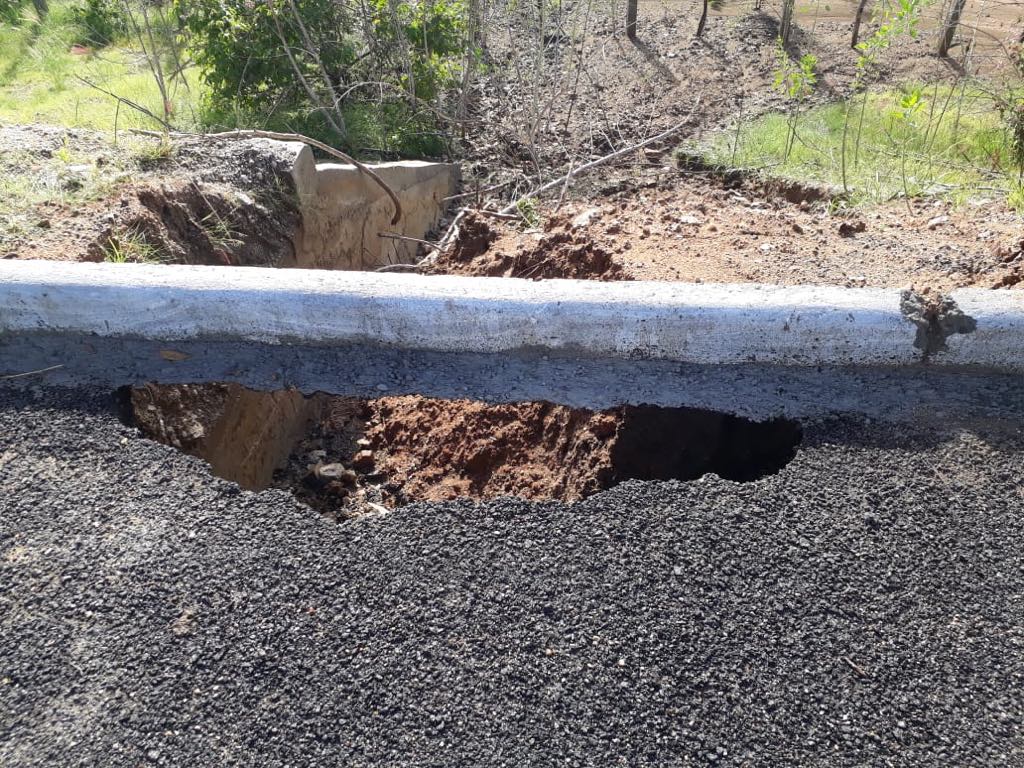 Após chuvas, estrada no Cariri volta a apresentar fissuras e moradores demonstram preocupação