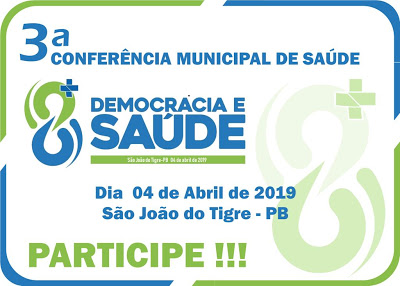 A prefeitura de São João do Tigre realiza nesta quinta feira (04) a sua 3ª Conferencia Municipal de Saúde. Com o tema: Democracia e Saúde, o evento será realizado no auditório da escola EMAFA, a partir das 07:30 horas da manhã e será promovido pela secretaria municipal de saúde. De acordo com a secretária Maria José, […]