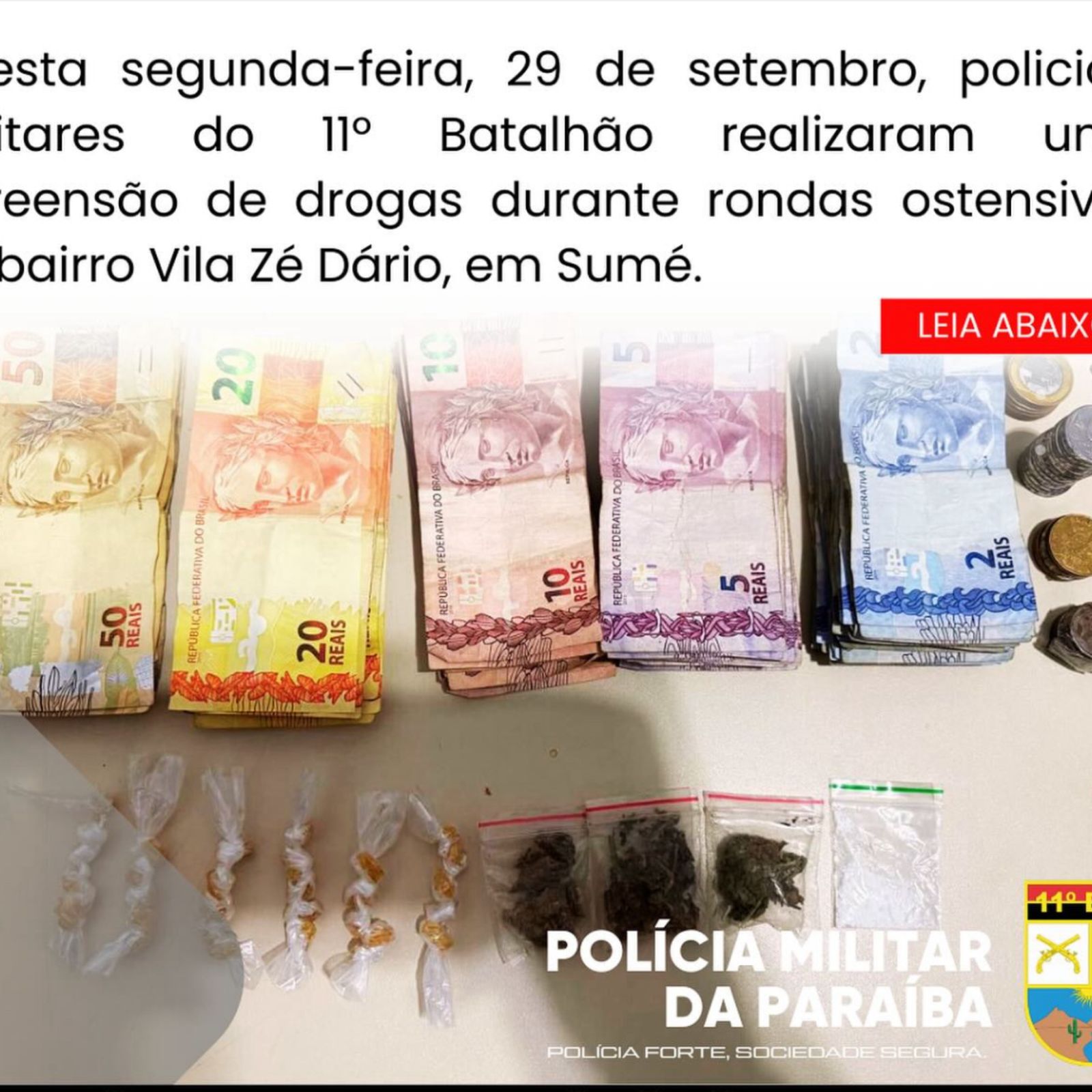Polícia Militar apreende drogas e dinheiro durante ação em Sumé