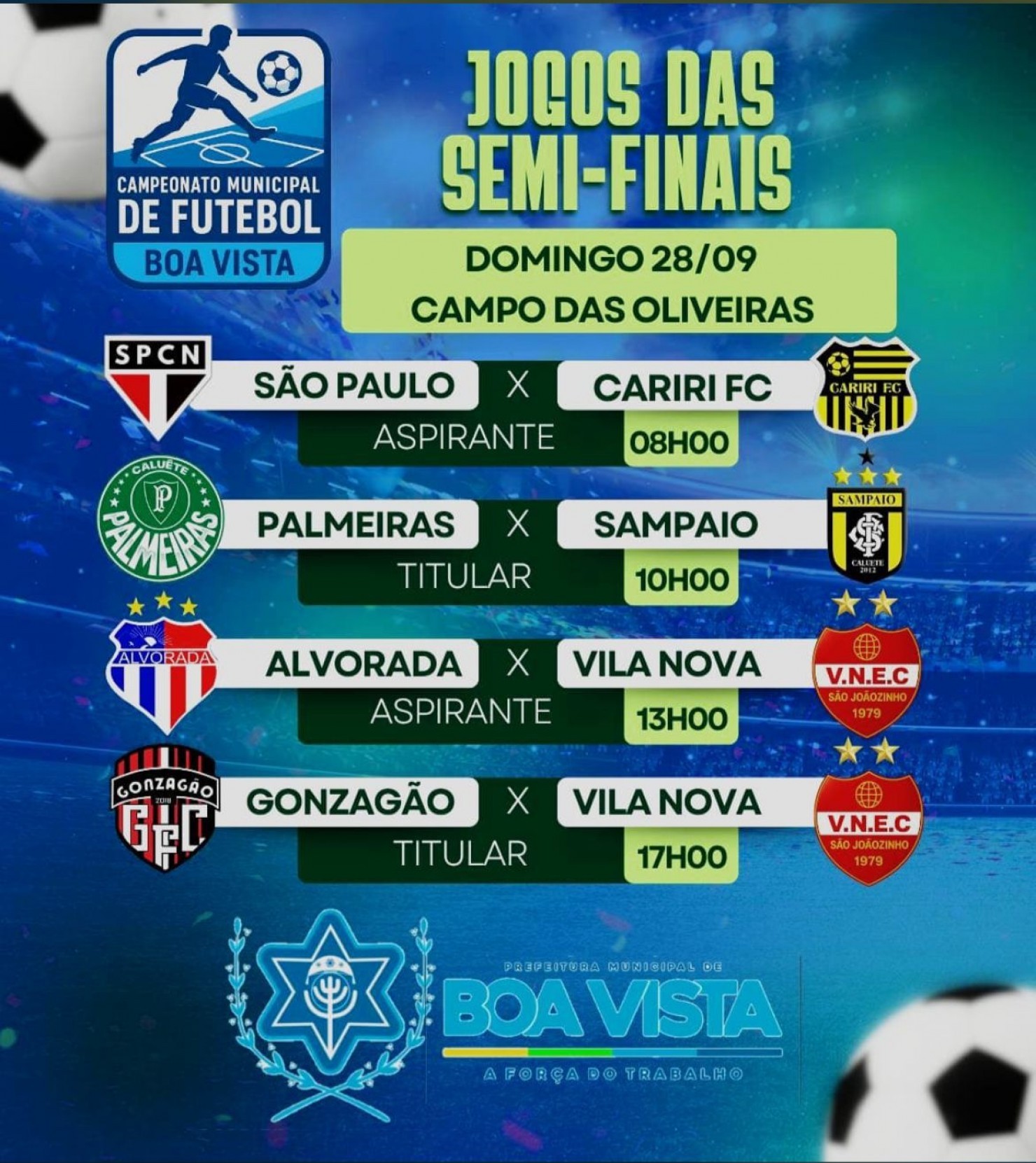 Semifinais do Campeonato Municipal de Futebol de Boa Vista acontecem domingo