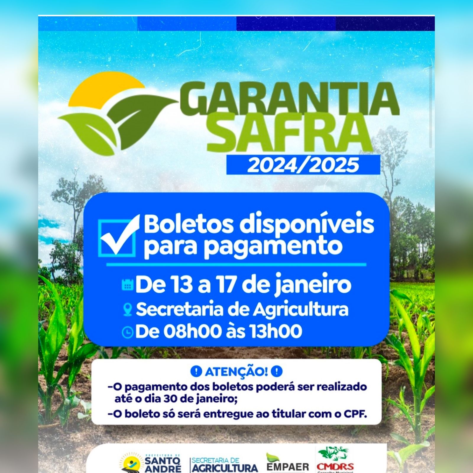 Secretaria de Agricultura de Santo André informa: Boletos do garantia safra 2024/2025 disponíveis a partir do dia 13