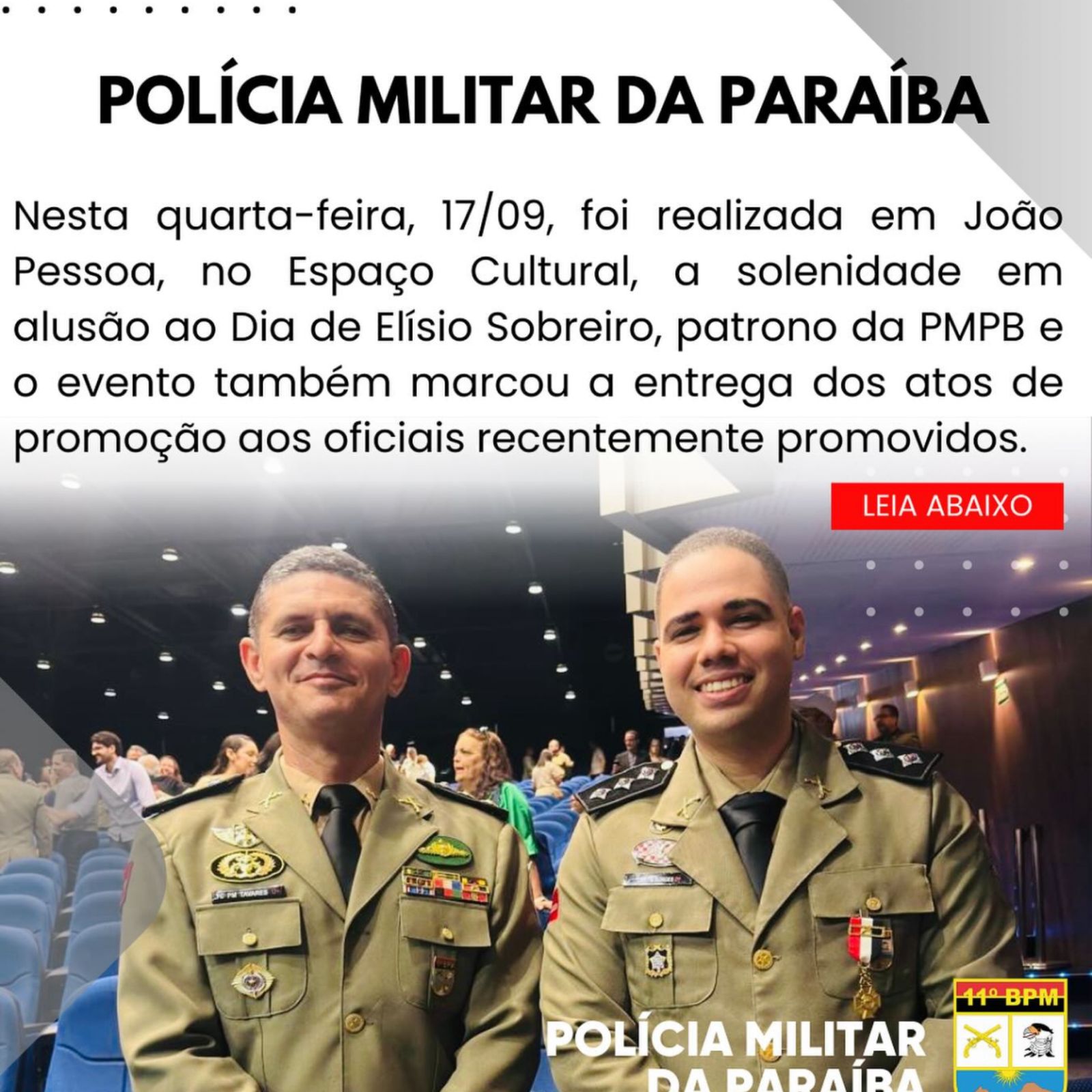 Nesta quarta-feira, 17 de setembro, a Polícia Militar da Paraíba realizou, no Espaço Cultural, em João Pessoa, a solenidade em alusão ao Dia de Elísio Sobreiro, patrono da corporação. Na ocasião, foram entregues as Medalhas Elísio Sobreiro a autoridades, militares e civis que contribuíram de forma direta ou indireta para o fortalecimento da instituição. A […]