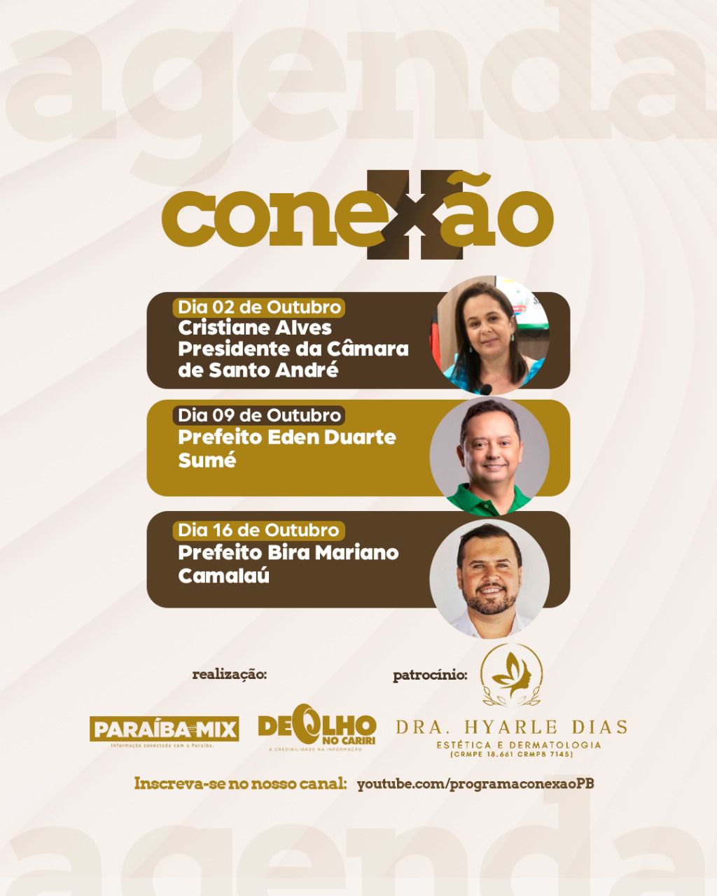 Após o grande sucesso desde a reestreia, o programa de entrevistas ‘CONEXÃO’, criado pelos portais de notícias De Olho no Cariri e Paraíba Mix, continua trazendo para sua mesa redonda on-line gente que é notícia. Já está disponível as três próximas conversas para os dias 02, 09 e 16 de outubro. Nesta segunda, dia 02, […]