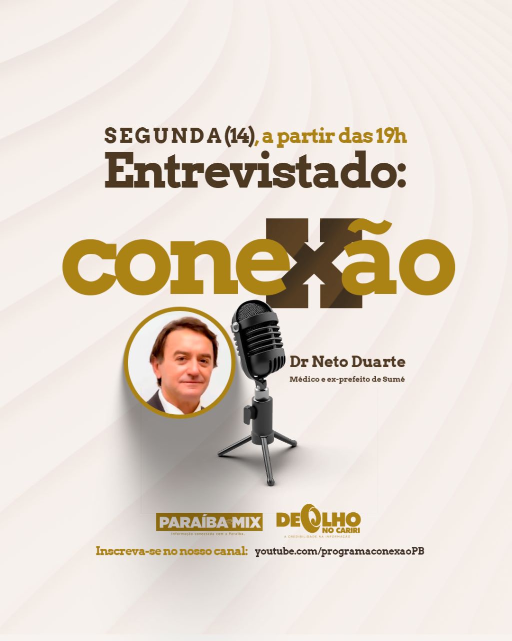 O Programa Conexão, que vai ao ar todas as segundas-feiras, a partir das 19:00 horas, irá receber nesta próxima edição um dos líderes políticos mais marcantes da região do cariri. Dr Neto Duarte, prefeito de Sumé por 5 vezes e apontado na cidade para disputar mais uma eleição, será o entrevistado do programa apresentado por […]
