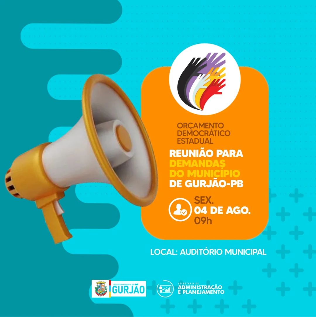 Munícipio de Gurjão realizará reunião preparatória visando o Orçamento Democrático Estadual