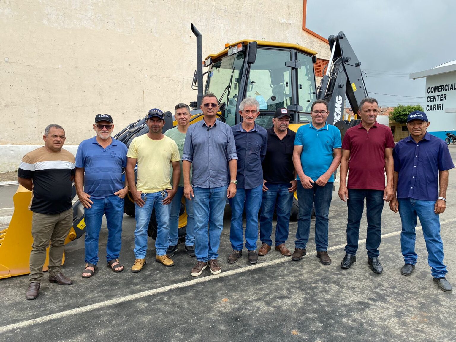 Ao lado dos vereadores, prefeito Onildo Lindberg entrega retroescavadeira e agradece ao senador Efraim Filho