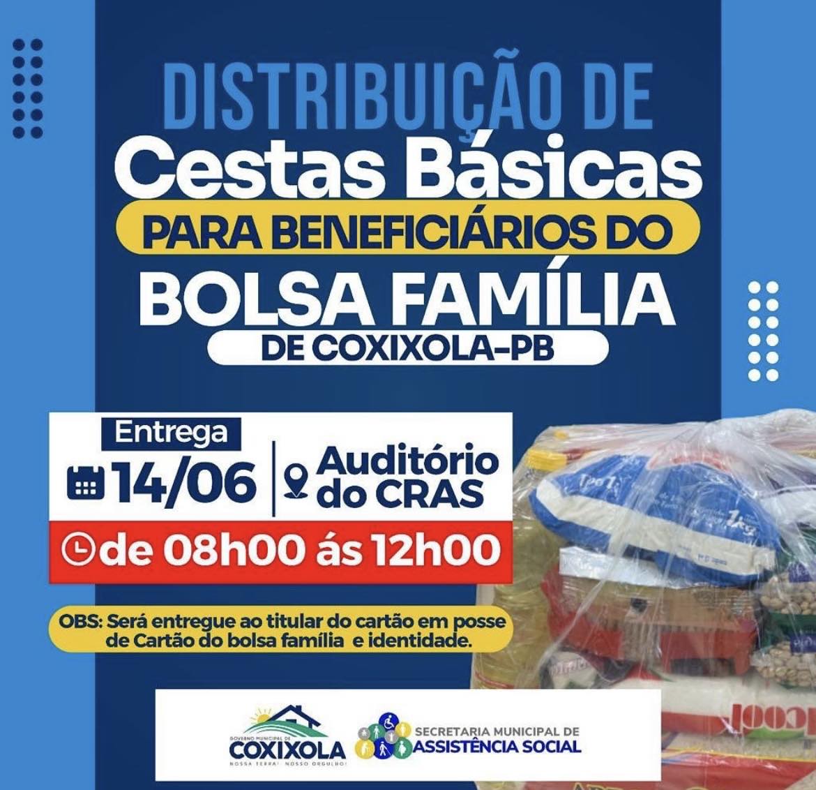 Prefeitura de Coxixola anuncia distribuição de cestas básicas para beneficiários do Bolsa Família