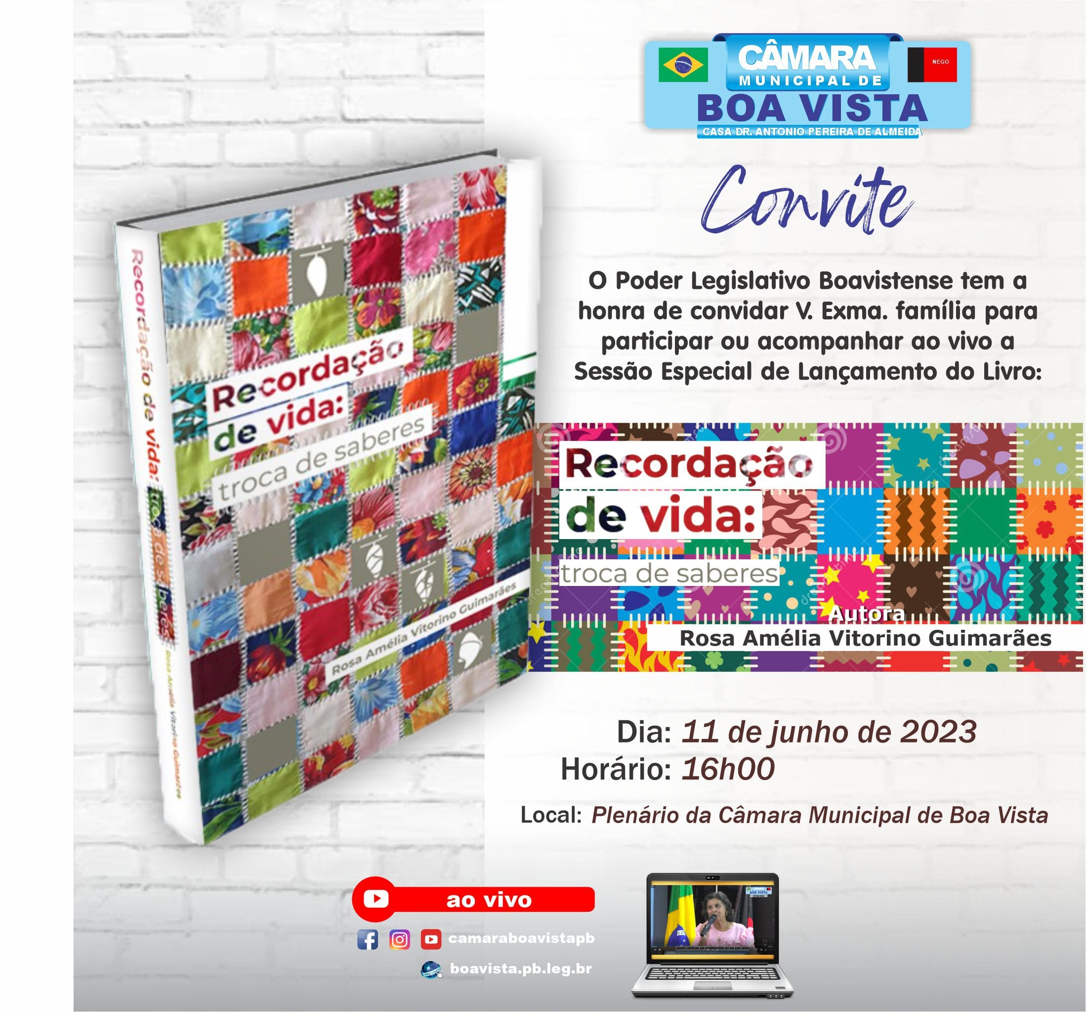 Câmara de Boa Vista promove neste domingo sessão especial para o lançamento do livro “Recordação de Vida: Troca de Saberes”
