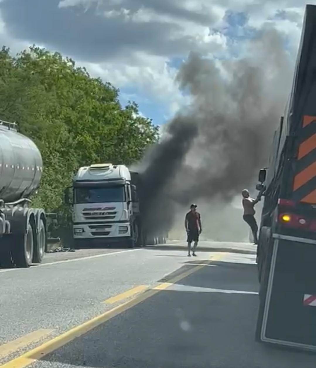 NO CARIRI: Carreta pega fogo na BR-412 durante esta tarde