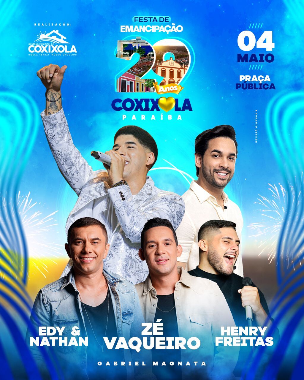 CONFIRA: Festa de 29 anos de Emancipação Política de Coxixola terá shows de Zé Vaqueiro e Henry Freitas