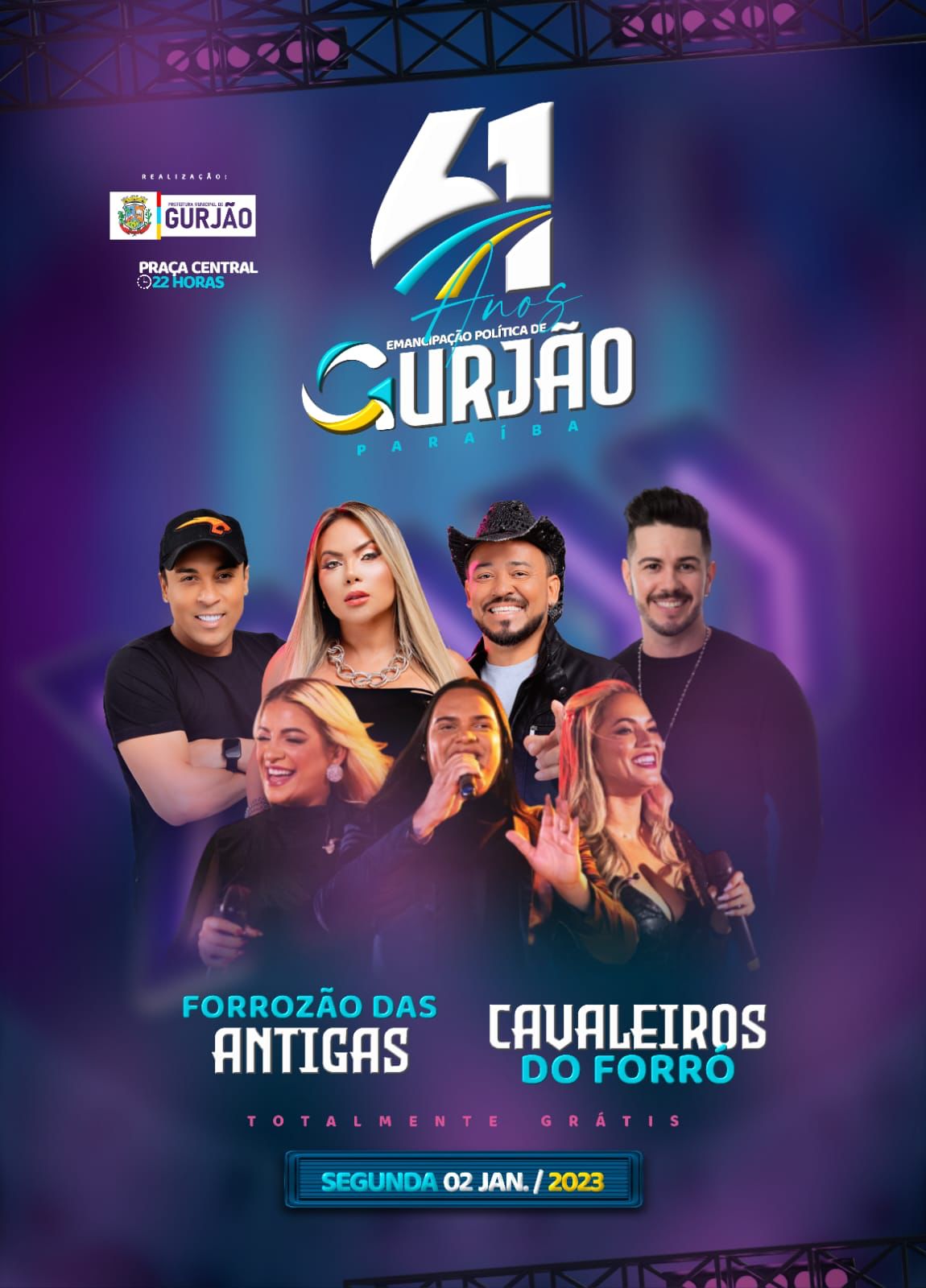 Neste dia 02 de janeiro de 2023 segunda-feira, a cidade do “Bode na Rua” Gurjão, no Cariri da Paraíba, celebrará 61 anos de Emancipação Política com um grande show em praça pública. A Prefeitura Municipal, preparou uma chegada e tanto para o novo ano e contratou a Banda Cavaleiros do Forró e a Banda Forrozão […]