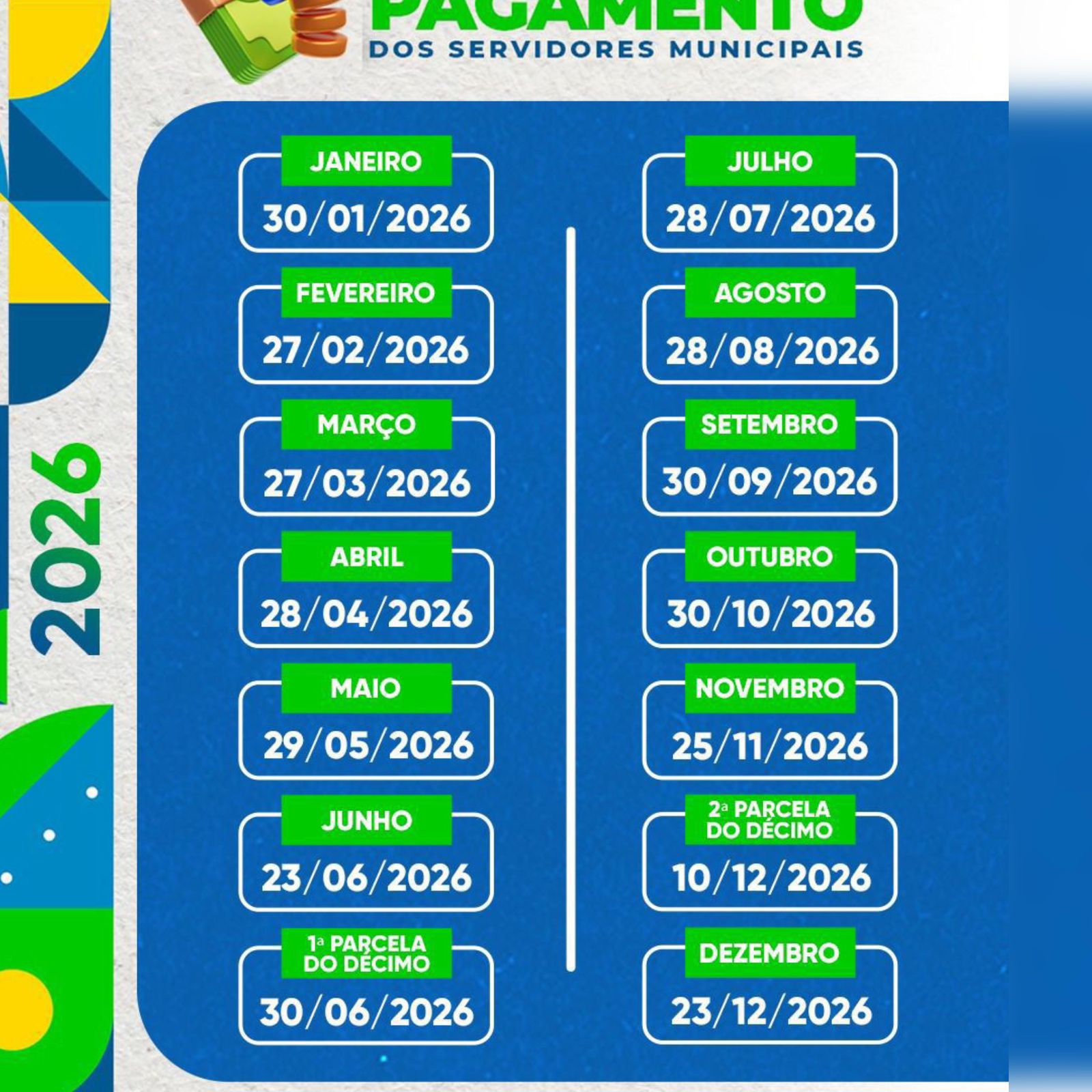 A Prefeitura Municipal de Boa Vista divulgou o calendário oficial de pagamento dos servidores públicos municipais referente ao ano de 2026. O cronograma estabelece datas fixas para o pagamento dos salários ao longo de todo o ano, garantindo previsibilidade, organização financeira e valorização do funcionalismo público. No calendário, consta a data em que vencimentos serão […]