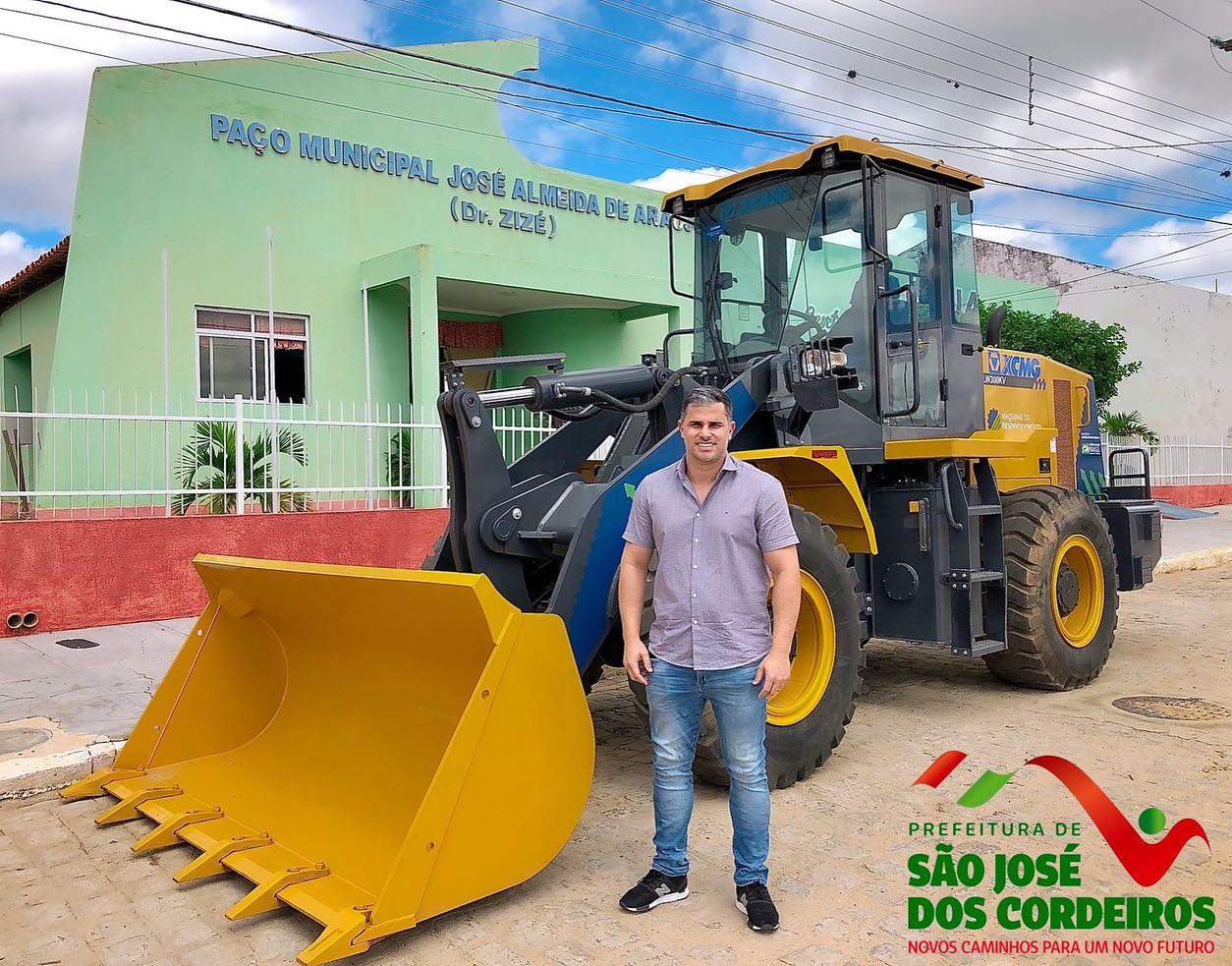 Município de São José dos Cordeiros recebe nova máquina Pá Carregadeira e prefeito Felício Queiroz agradece ao deputado Wellington Roberto