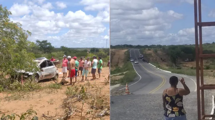 Carro com família de Santa Cruz do Capibaribe capota em estrada na região do Cariri paraibano