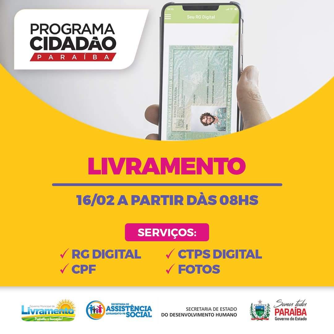 Programa Cidadão Paraíba realizará emissão de documentos de forma gratuita na cidade de Livramento