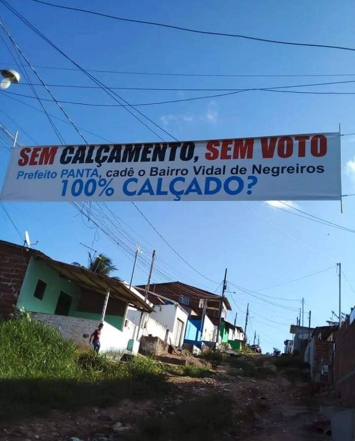 SE ESSA MODA PEGA? Moradores fazem protesto contra prefeito paraibano e colocam faixa em rua: “Sem calçamento, sem voto”