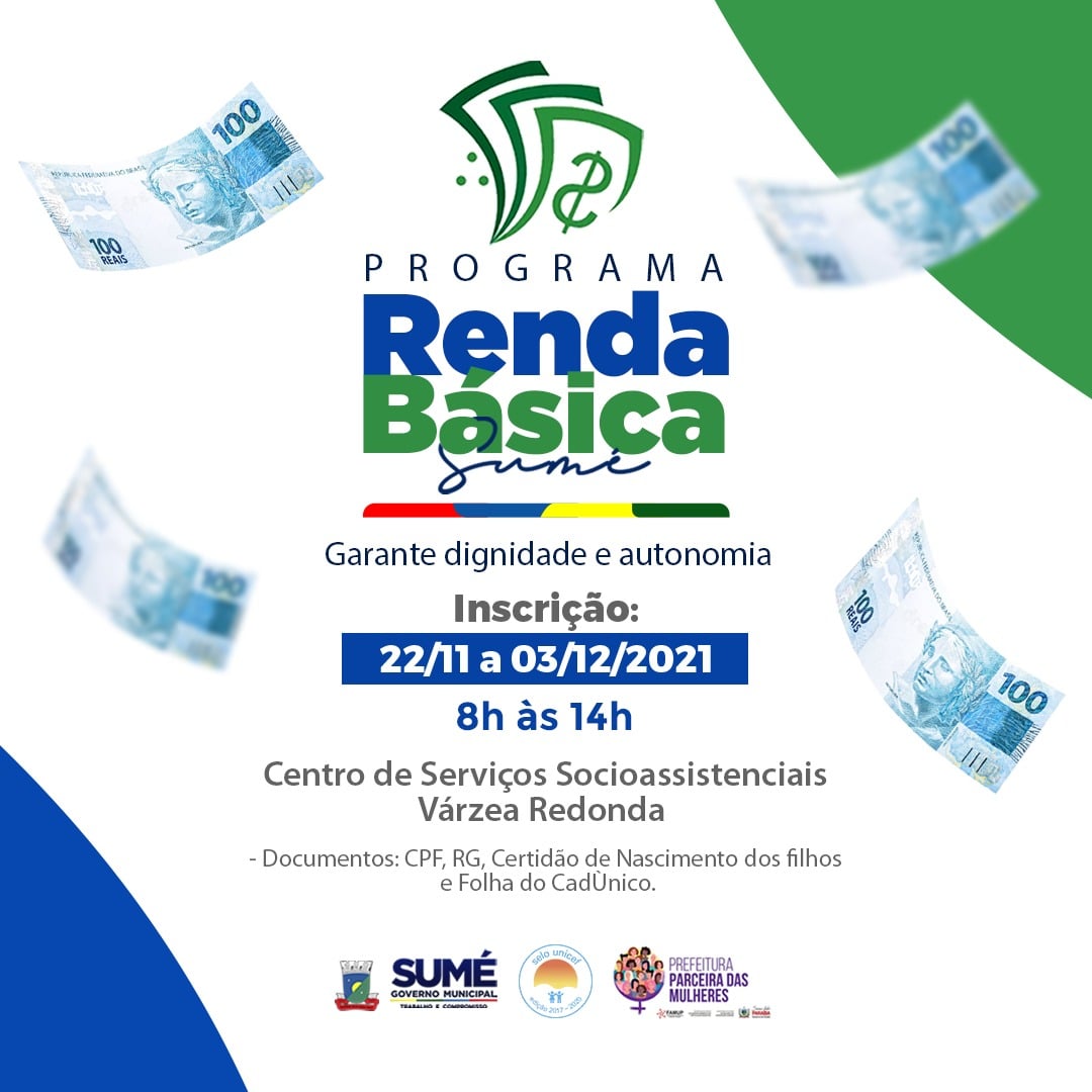 Estão abertas as inscrições para o programa “Renda Básica Sumé”