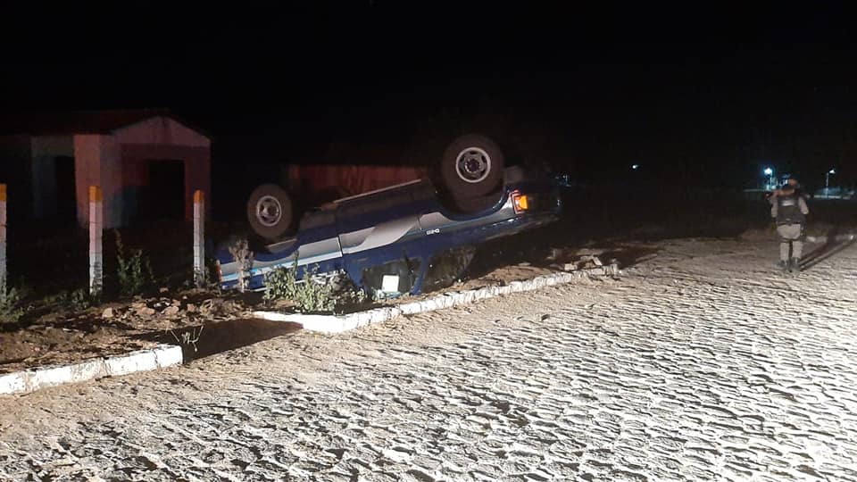 Criminosos roubam carro e capotam durante fuga na zona rural de Serra Branca