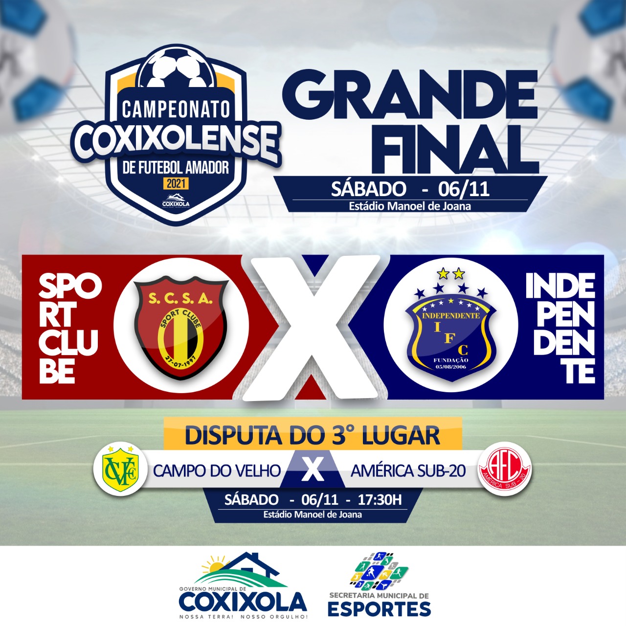 Após jogos marcados por muita emoção, rivalidade e prestígio entre os desportistas, o Campeonato Coxixolense de Futebol Amador 2021 chega ao seu momento auge neste sábado(06), com a grande e decisiva final do certame. As equipes do Independente E.C do Campo do Velho e o Sport do Serrote Apertado desbancaram os seus adversários nas semifinais […]