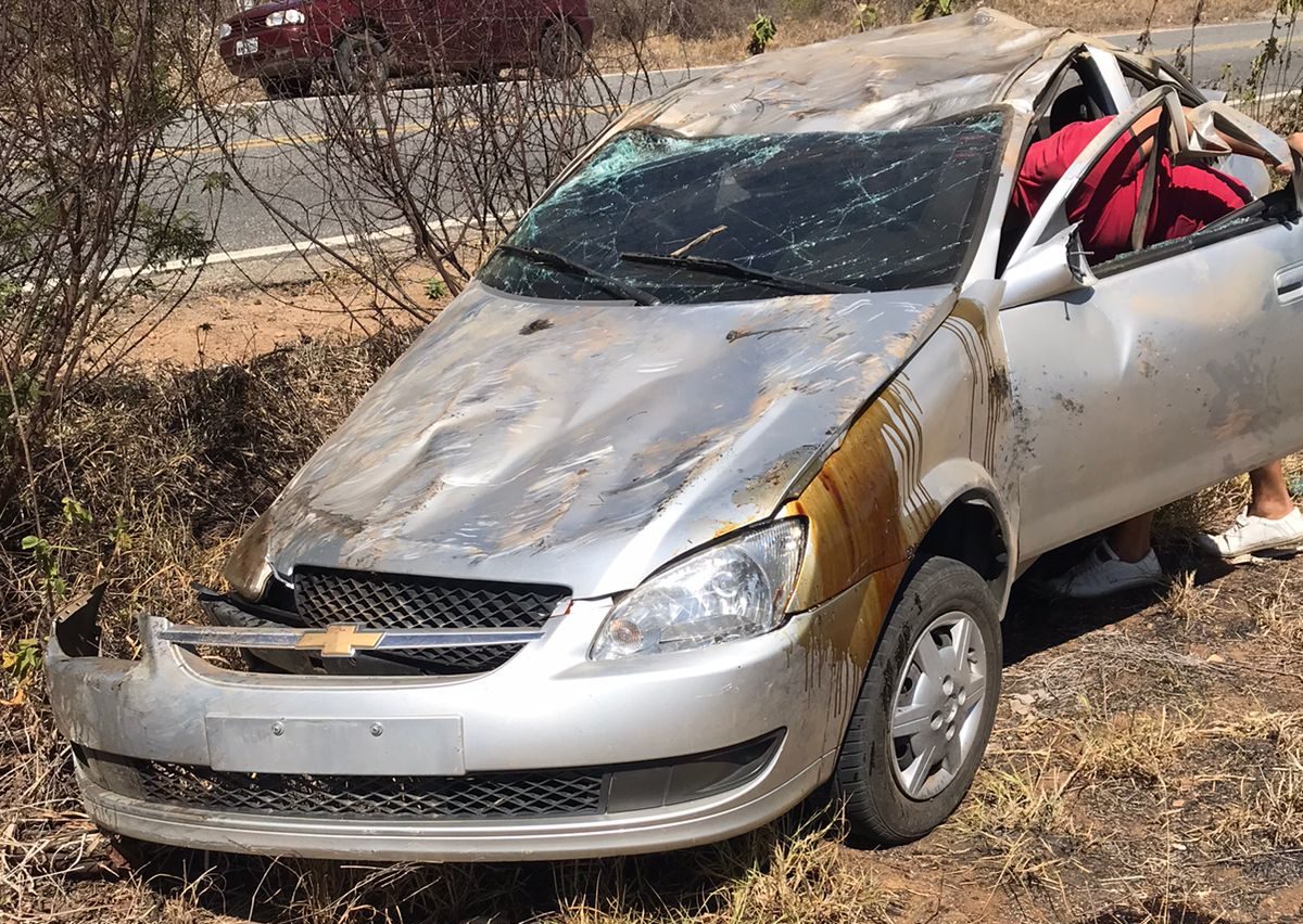 Motorista perde o controle da direção e carro capota em estrada na região do Cariri