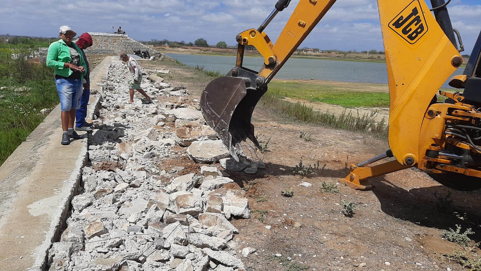Prefeitura de Gurjão refaz parte do sangradouro do açude municipal e realiza serviços de manutenção em calçamentos