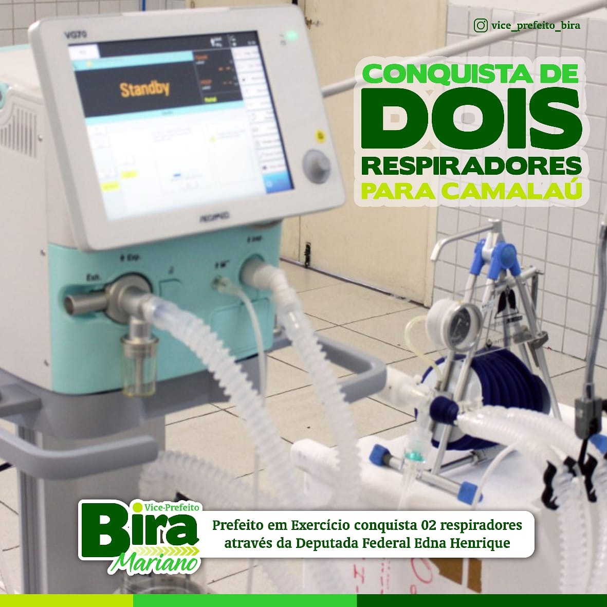 O município de Camalaú recebeu na última semana dois respiradores, para auxiliar as pessoas que possuem problemas respiratórios, assim como pessoas que precisem de forma momentânea utilizar este equipamento. Os respiradores foram enviados através da Deputada Federal Edna Henrique. O prefeito em exercício Bira Mariano, agradeceu a deputada Edna Henrique, assim como o empenho do […]