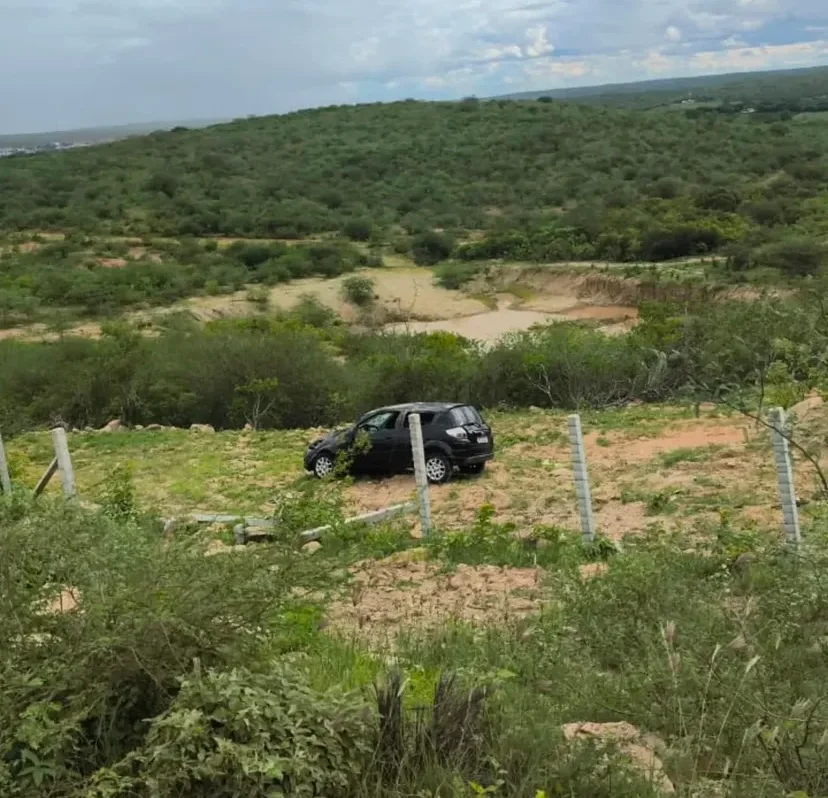 De acordo com as informações apuradas no local, o veículo saiu da pista e desceu um trecho em declive às margens da rodovia, chegando a atingir uma cerca. Imagens do acidente mostram o carro com danos visíveis, além de uma das portas aberta após o impacto.