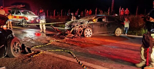 A colisão entre os dois veículos pode ter sido motivada por uma ultrapassagem indevida. Com o impacto, duas vítimas ficaram presas às ferragens e precisaram de apoio do Corpo de Bombeiros para serem retiradas do veículo.