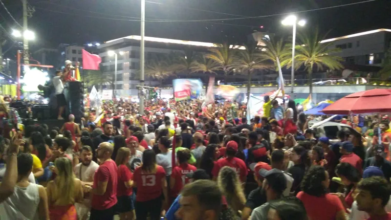 Eleitores do ex-presidente Lula (PT), eleito presidente da República, e do governador João Azevêdo (PSB), reeleito para o cargo, lotaram o Largo de Tambaú (antigo Busto de Tamandaré) na noite deste domingo (30) para comemorar o resultado do segundo turno das eleições.