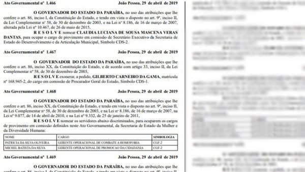 O governador da Paraíba, João Azevêdo (PSB), exonerou o procurador geral da Paraíba, Gilberto Carneiro da Gama, e o secretário de Planejamento,Orçamento e Gestão, Waldson Dias de Souza. As exonerações foram publicadas no Diário Oficial do Estado (DOE) desta terça-feira (30). Outras mudanças em secretarias também foram publicadas.