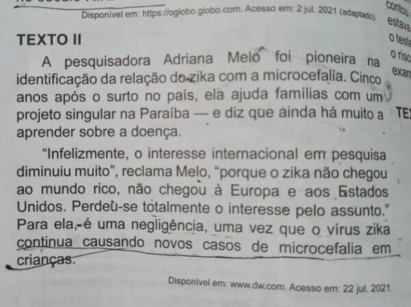 A pesquisadora da Paraíba, médica Adriana Melo, foi citada nos textos auxiliares da redação do Enem, na reaplicação feita nesse domingo (9) para estudantes que não fizeram as provas em novembro do ano passado. A médica de Campina Grande foi lembrada como a pioneira na identificação da relação do vírus zika com a microcefalia, que afetou diversas crianças, especialmente na Paraíba e em Pernambuco.