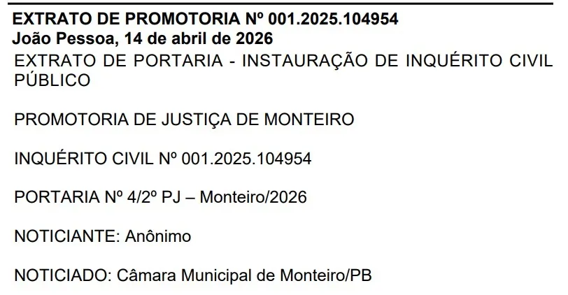 A promotoria responsável pelo caso informou que as diligências já começaram e que novas medidas poderão ser adotadas conforme o andamento das apurações. Até o momento, a Câmara Municipal de Monteiro não se pronunciou oficialmente sobre o caso.