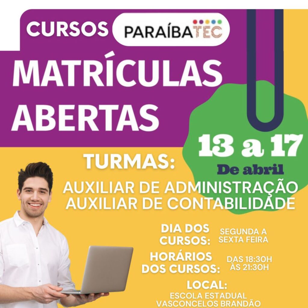 O programa Paraíbatec, vinculado à Secretaria de Estado da Educação da Paraíba, está com novas oportunidades de qualificação profissional para o município de Serra Branca, no Cariri paraibano. A iniciativa disponibiliza dois cursos de Formação Inicial e Continuada (FIC), voltados para quem busca inserção rápida no mercado de trabalho ou atualização profissional.