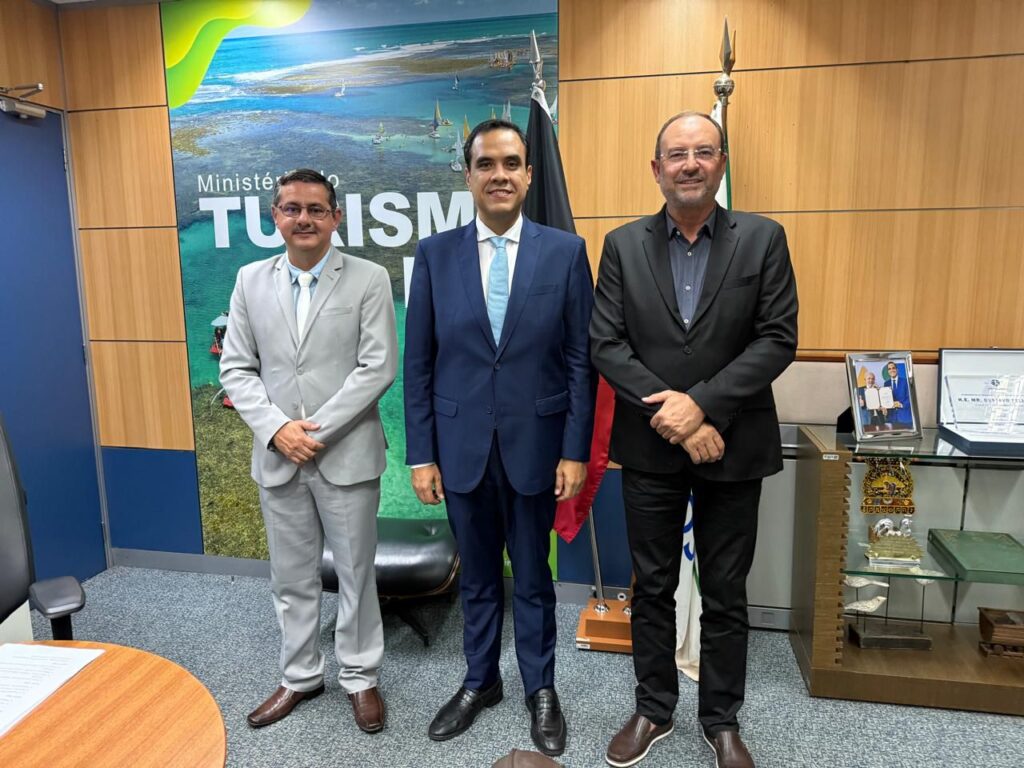 O prefeito de São João do Cariri, Chico de Eulina, segue cumprindo uma agenda intensa em Brasília, onde vem buscando parcerias e recursos para fortalecer o desenvolvimento do município. Entre os compromissos, o gestor esteve reunido com o ministro do Turismo do Brasil, Gustavo Feliciano, para tratar de ações voltadas ao fortalecimento do calendário cultural e de eventos da cidade.