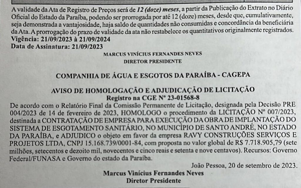 O prefeito de Santo André, Edglei Amorim, anunciou nesta segunda-feira (25), que o sistema de esgotamento sanitário para a cidade sairá do papel. Após um processo de licitação bem sucedido, a empresa Ravy Construções Serviços e Projetos foi vencedora, já tendo prestado serviços no município anteriormente.