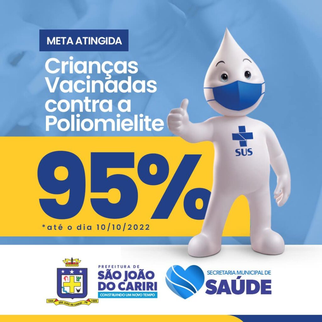 No momento onde o Ministério da Saúde tem convocado os brasileiros para vacinar as crianças contra a Poliomielite a cidade de São João do Cariri cumpre seu papel e dá exemplo para os demais municípios.