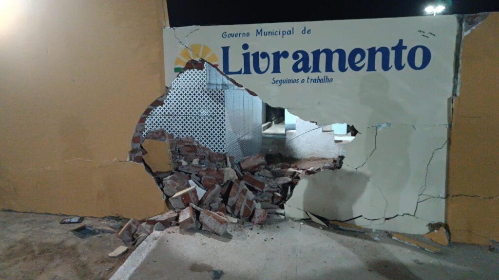 Um acidente chamou a atenção de moradores de Livramento na noite desta quarta-feira (04), por volta das 19h58, na Rua Francisco Gomes Meira, no bairro Santa Terezinha. Um veículo modelo Jeep Renegade colidiu contra a parede do Cemitério São João Batista, causando danos na estrutura.