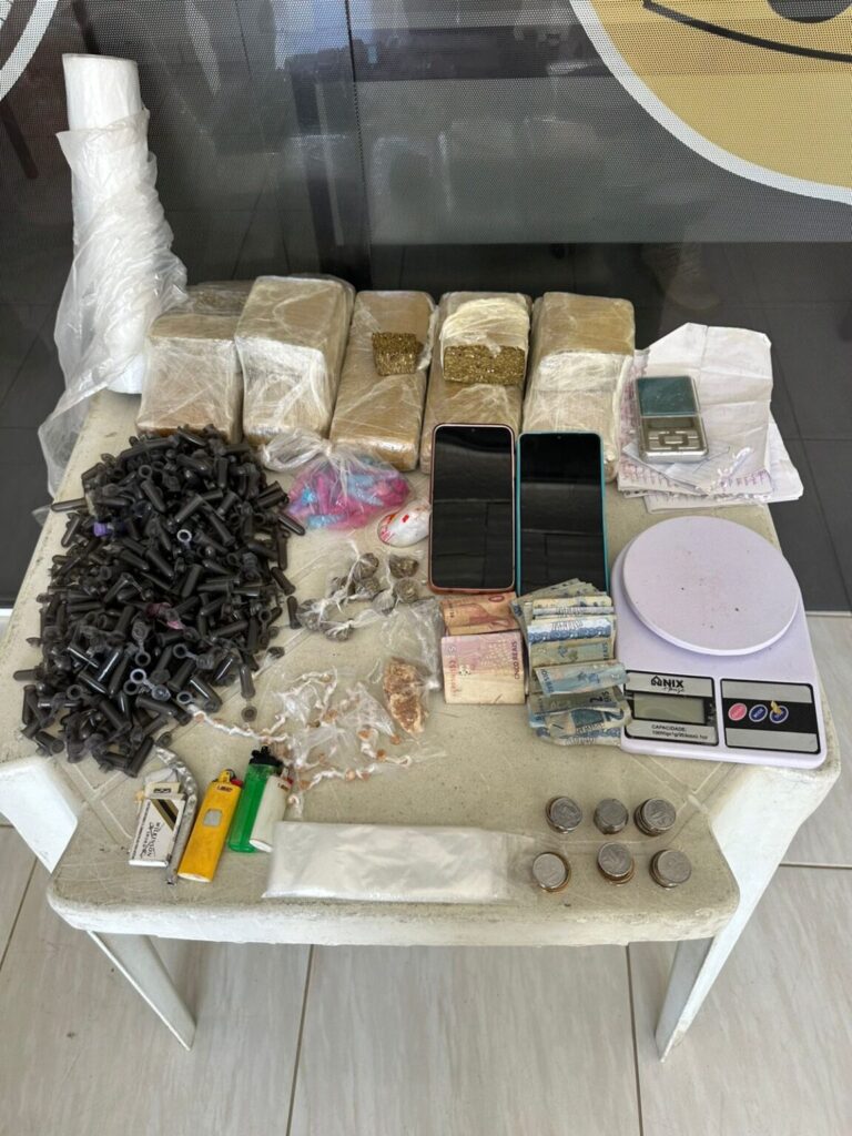 A ação foi desencadeada após denúncias anônimas que apontavam a prática de tráfico de drogas em uma residência localizada na Rua Miguel Félix Barbosa, Vila da Papa, em Monteiro. Durante o cumprimento da diligência, os policiais encontraram 45 pedras de crack, cinco tabletes e 15 porções de maconha (totalizando 4,5 kg), além de balanças de precisão, celulares e dinheiro proveniente da venda de entorpecentes.