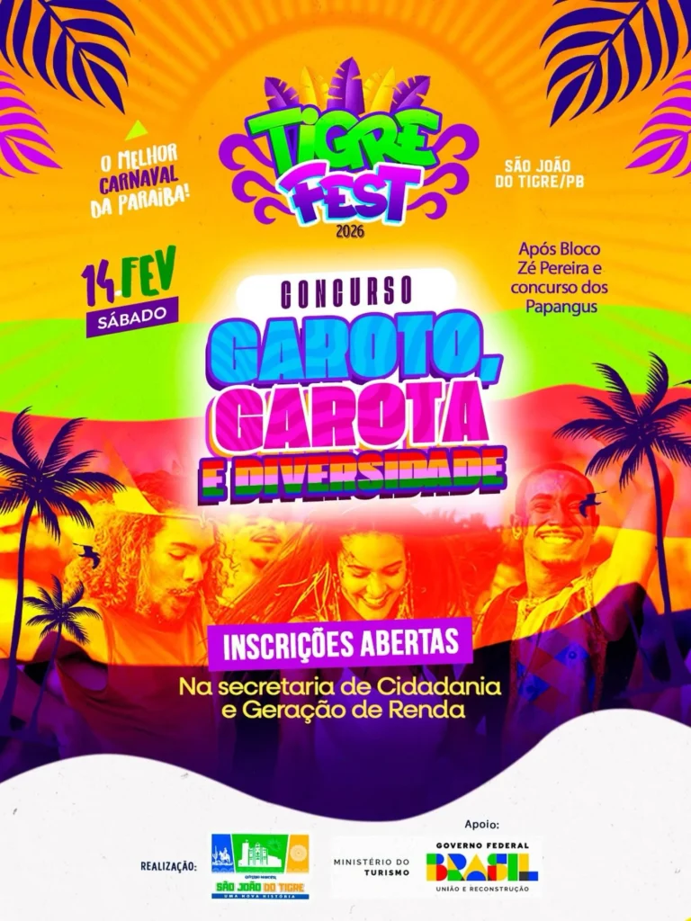 O Tigre Fest 2026 promete ser ainda mais vibrante e inclusivo com a realização do Concurso Garoto, Garota e Diversidade, um dos momentos mais aguardados da programação carnavalesca de São João do Tigre. O evento celebra a beleza, o talento, o carisma e, acima de tudo, a diversidade que marca o povo tigreense.