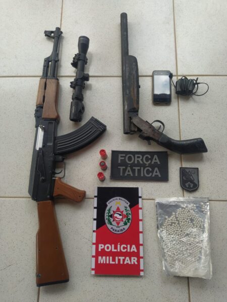 Ainda de acordo com informações, arma calibre 12 provavelmente foi usada em tentativas de homicídios na região, e a de air soft, usada em roubos, o mandado de prisão foi em decorrência do roubo da moto Honda Bros, no município de zabelê, dentre outras que foram roubadas na época.