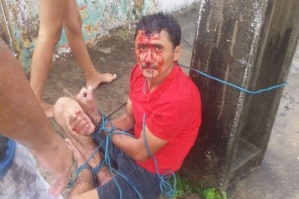 Um homem foi espancado e amarrado em um poste, na manhã desta quinta-feira (27), após agredir uma idosa, no Centro de João Pessoa.