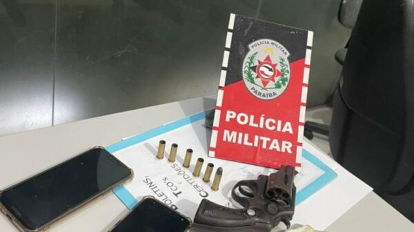 Após diligências, a guarnição conseguiu localizar uma jovem de 17 anos, suspeita de envolvimento na ação. Com ela foi encontrada uma bolsa contendo um revólver Cal. 38, 06 munições, 03 celulares , peças de roupas e 316,00 em dinheiro.