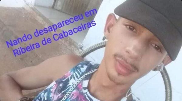 Um jovem de 19 anos, de nome Fernando Oliveira do Nascimento, conhecido por Nando, desapareceu no final da tarde da última terça-feira (23), no distrito da Ribeira, município de Cabaceiras, no Cariri.