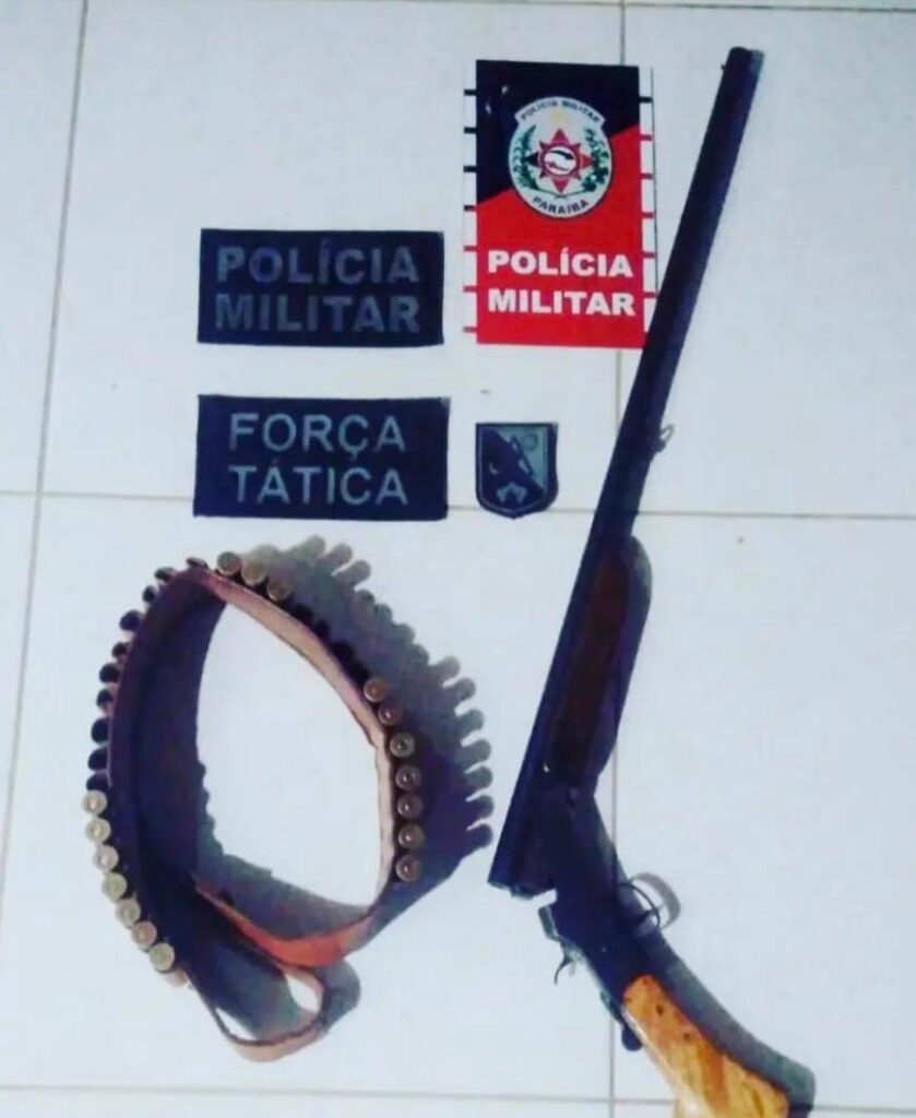 E, tão logo o fato foi noticiado ao serviço de emergência, através do 190, os policiais militares do 11° Batalhão da Polícia Militar deram inicios às buscas que resultaram na prisão do acusado e na apreensão de uma espingarda calibre 32, marca Ross e respectiva munição.