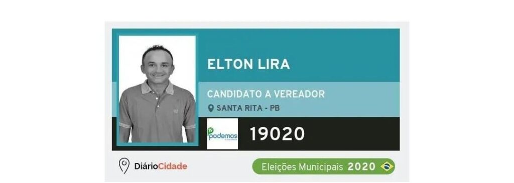 Elton Lira foi candidato a vereador pelo partido PODE, nas eleições de 2020. Ele obteve 722 votos e estava como suplente, prestes a assumir o cargo na Câmara Municipal de Santa Rita.