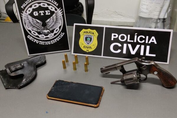 Os policiais apreenderam também uma máscara utilizada para cometer roubos. De acordo com o delegado Cristiano Santana, a arma apreendida estava com a mulher. “Ela foi presa em Pocinhos. Foi autuada em flagrante por posse ilegal de arma de fogo, mas está sendo investigada por possível participação em roubos na região”, disse o delegado.
