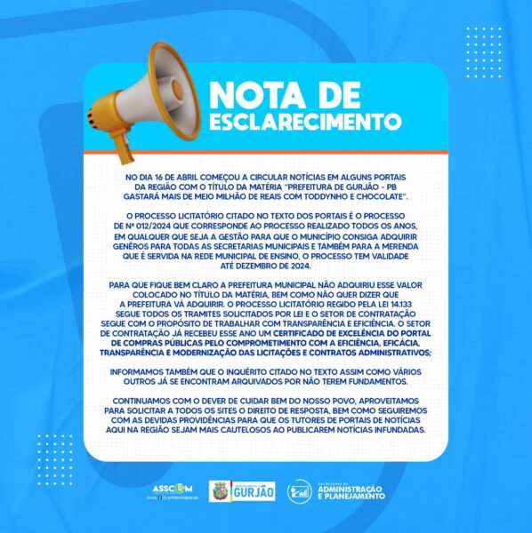 Prefeito Zé Elias divulga nota de esclarecimento após notícias de compra de R$ 500 mil em chocolates e toddynho 18 de abril de 2024