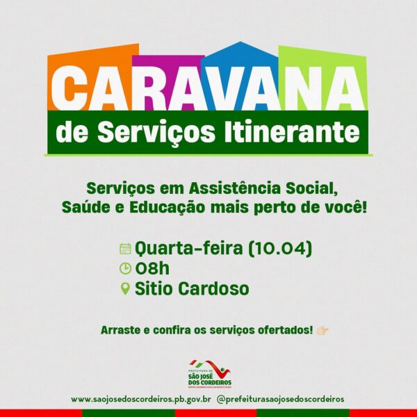 Prefeitura de São José dos Cordeiros realiza caravana de serviços a partir desta quarta-feira 9 de abril de 2024